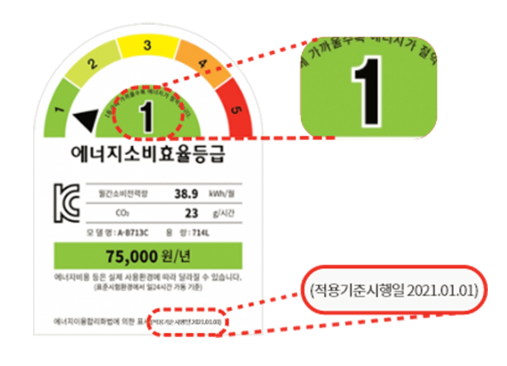 ● 에너지소비효율등급 라벨 예시