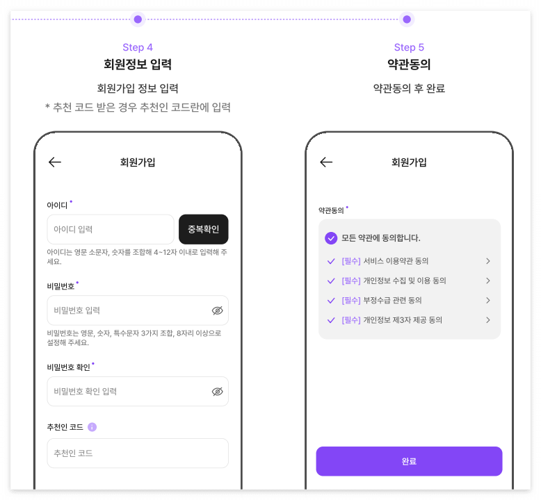 Q: 기기 변경 시에는 어떻게 하나요? A: 새로운 기기에서 앱을 설치한 후 다시 휴대폰 본인 인증을 거치면 기존의 데이터와 포인트 정보가 안전하게 이전됩니다.