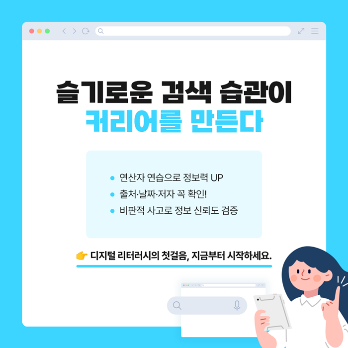 꾸준히 연습하면 검색은 ‘시간 낭비’가 아닌 ‘스펙 향상’의 도구가 됩니다.
