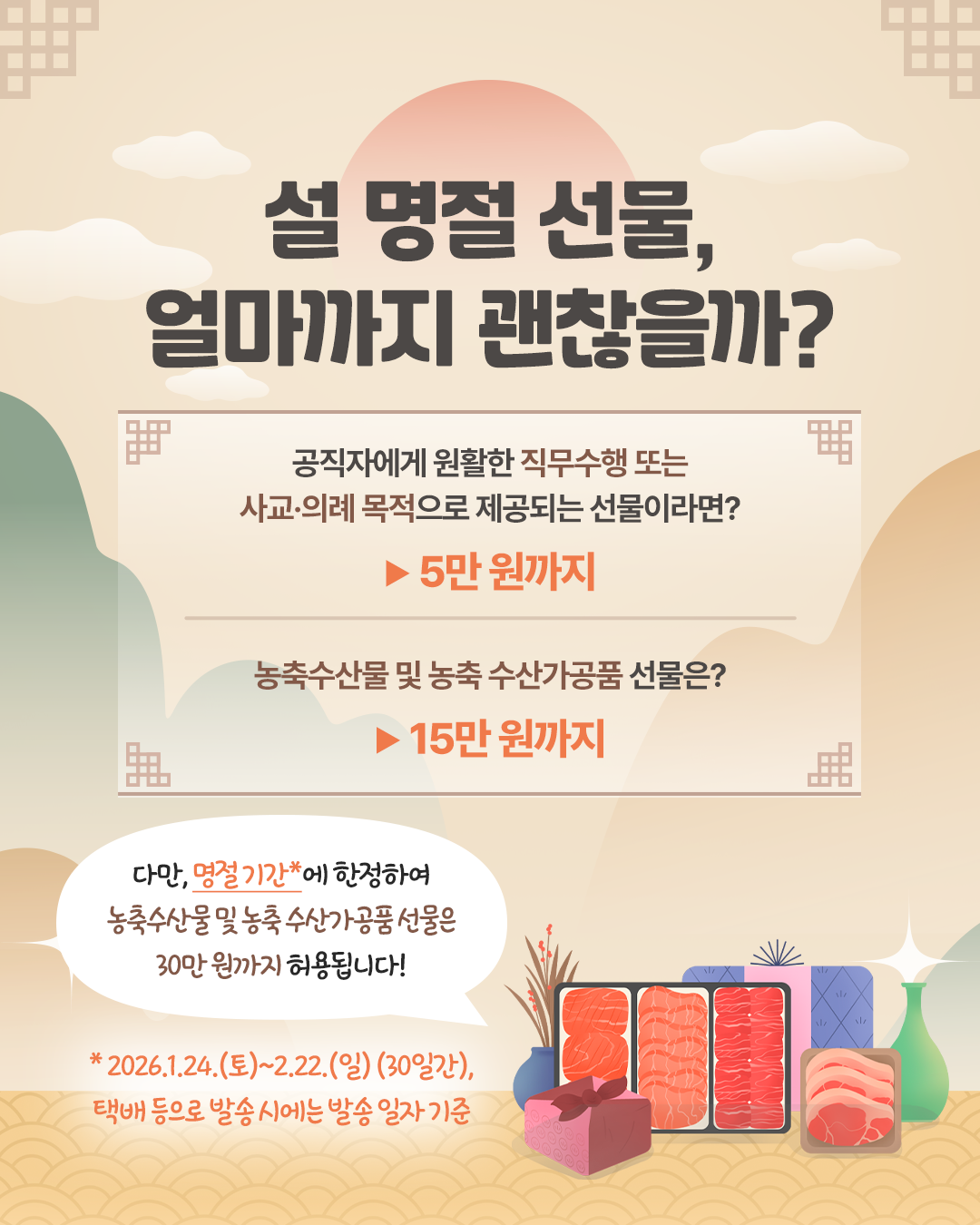 명절 기간에는 평소보다 선물 교류가 활발해지는 점을 고려하여, 농수산물 및 농수산가공품에 대한 선물 가액 범위가 한시적으로 혹은 정기적으로 조정되곤 합니다. 핵심은 '누가 누구에게, 어떤 목적으로, 얼마짜리 선물을 하느냐'입니다.