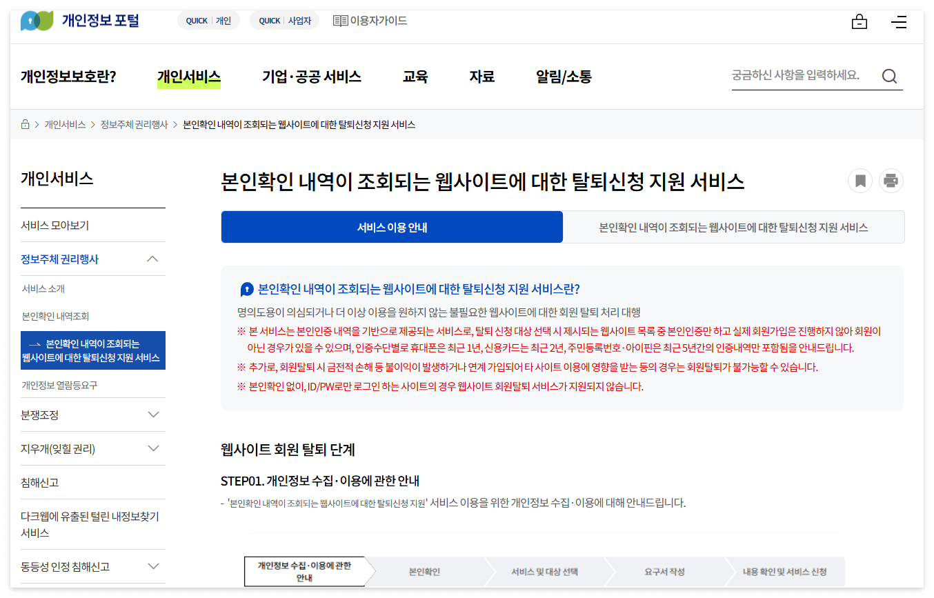 ![유출된 개인정보 확인! 지금 바로 이렇게 하세요! '웹사이트 회원 탈퇴 서비스', '털린 내 정보 찾기 서비스'[개인정보포털]](https://blog.kakaocdn.net/dna/qcf3b/dJMcafrK0v9/AAAAAAAAAAAAAAAAAAAAAAKHV3bpWd3nHcFgXpeu4IChmWomR4S_ruf8xLOQn02D/img.png?credential=yqXZFxpELC7KVnFOS48ylbz2pIh7yKj8&expires=1777561199&allow_ip=&allow_referer=&signature=jSrmf4G3wyHZOMZjBxd9o8OYKGg%3D)