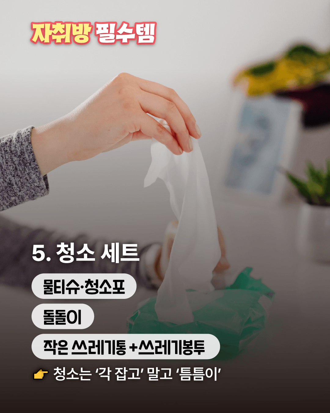 - 기타: 전자레인지, 전기포트 (자취방에 없다면 있어야겠죠?)