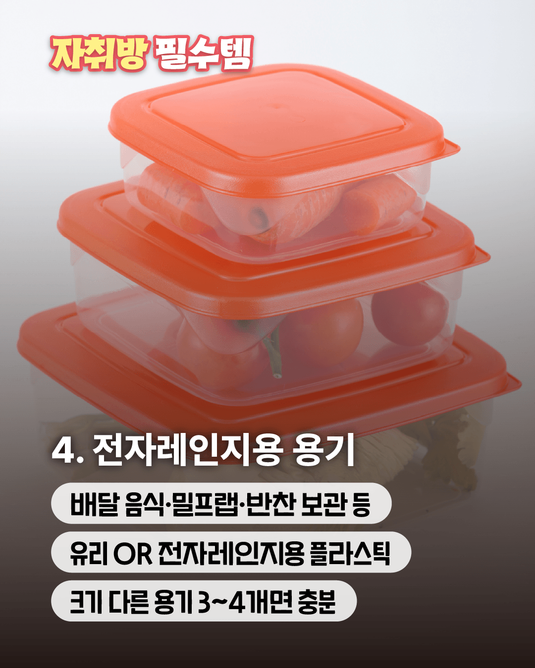 - 크기가 다른 용기 3~4개면 충분! (1인 기준)