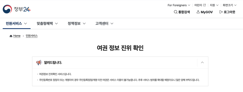 | 여권 | 성명, 주민등록번호, 여권번호 입력 | 정부24 |