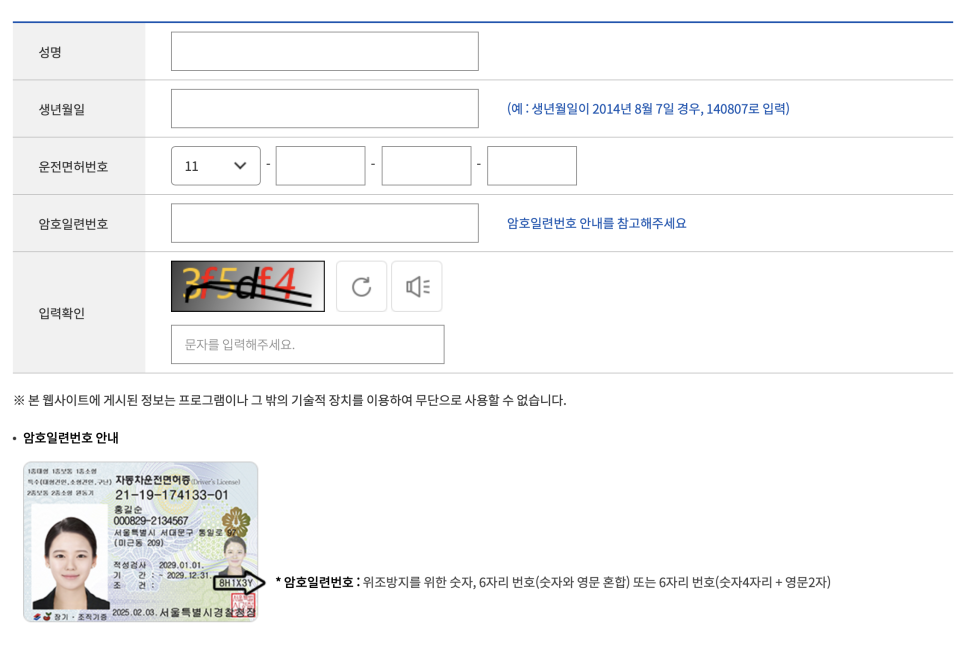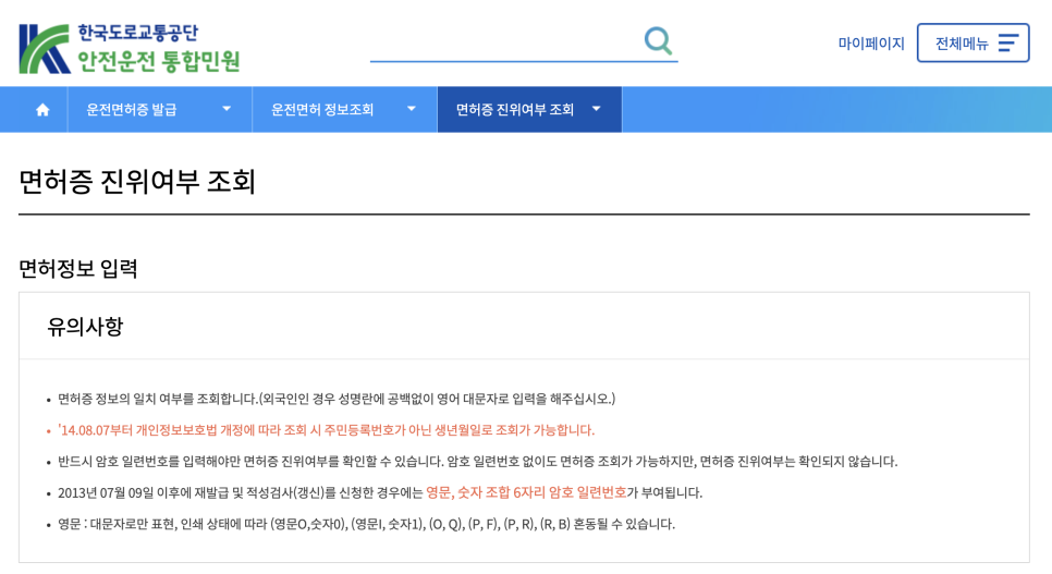 ▶ 한국도로교통공단에서 운전면허증 진위확인 방법