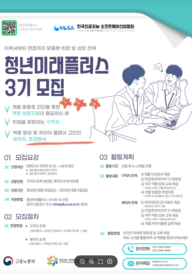 고용노동부가 주관하는 ‘청년미래플러스’는 청년들의 취업 준비부터 재직 후 경력 개발까지, 청년 고용의 전 주기를 지원하는 정책입니다. 산업별 협회 등과 협업해 실무형 컨설팅과 직무교육, 멘토링, 그리고 기업 연계까지 폭넓은 프로그램을 운영합니다.