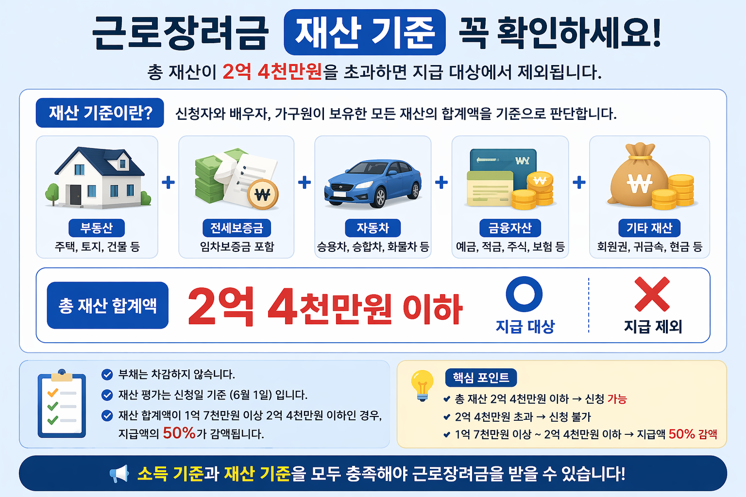 | 핵심 포인트 | 소득 + 재산 기준 |