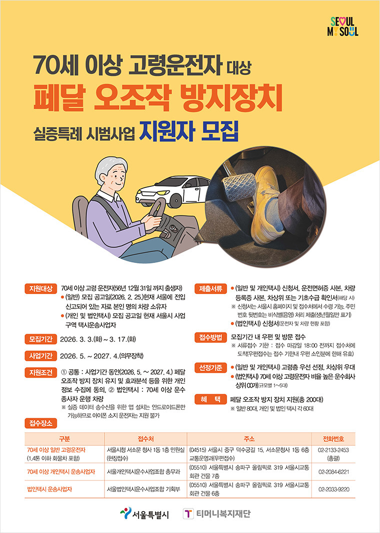- 모집 인원: 총 200대 (일반 고령 운전자 및 택시 운전자 포함)